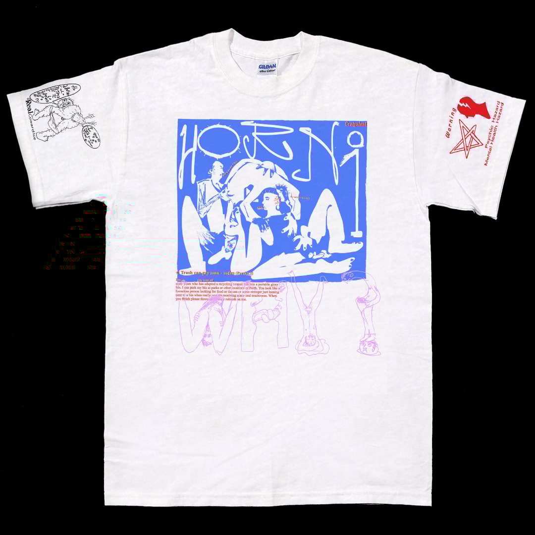 Unless otherwise stated, shirts are Ramo brand regular fit tee shirts, sizes are comparable to Gildan but are a slightly more boxy cut. 195gsm 100% cotton using a combination of fabric markers, waterbased fabric ink and permanent markers. AFTERCARE Handwash or machine wash in cold water. POSTAGE All orders in Australia sent Australia post with tracking number. For anyone outside of Australia or if you would like a custom shirt please do get in touch with me here.